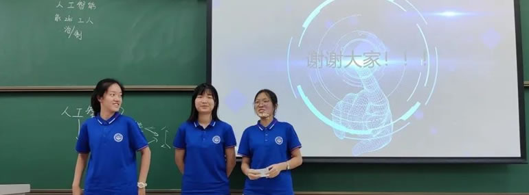 张同学说:“人工智能+X,X可以是未来、是潜力,也是能力。”她心目中的人工智能技术是有温度的,能进一步提高生活质量。罗同学分享了自己对人工智能与人关系的思考。缪同学即兴来了一段rap,引来同学阵阵掌声。林同学分享了自己对编程建模的畅想。