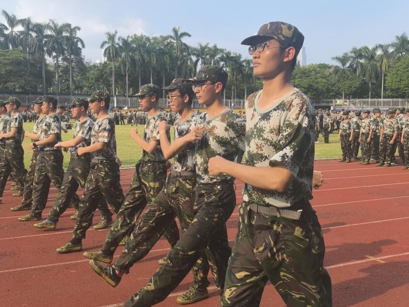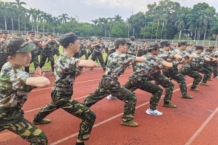 8月29日中大2024级新生进行开训仪式,随着猎猎红旗纷飞,展展校旗飘扬,我们2024级新生开始了热火朝天的军训生活。扛着人工智能学院的大旗,早上阳光柔和,照在我的脸上,也照进我的心房——我们的军训也是要开始了!