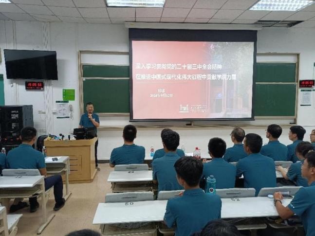 最后,余立人书记以《中共中央关于进一步全面深化改革、推进中国式现代化的决定》为主题为新生们讲授了“思政第一课”。他向师生们传达了党的二十届三中全会精神,强调了要正确认识“四个迫切需要”及进一步全面深化改革的必要性,并着重指出教育改革的重要意义。他希望同学们珍惜宝贵的学习时光,既要勤奋学习,积极实践,不断提高自身的综合素质和专业能力,又要敢于创新,勇于探索,做新时代民族复兴之路上的奋斗者。