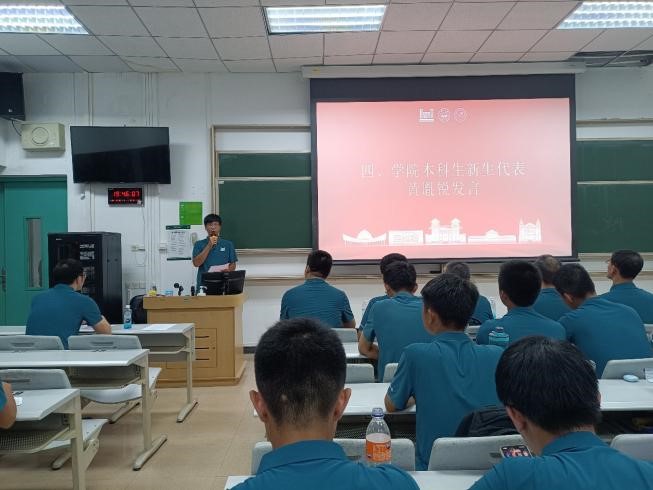 2024级本科生黄胤锐同学作为学院本科新生代表发言。他深刻表达了作为世纪中大学子值此年华的兴奋和对中大校园文化的喜爱,并向大家讲述了自己大学生活的规划和憧憬。他号召同学们身怀青云之志,心系家国情怀,凭借自己的学识为强国建设、民族复兴贡献青春力量。