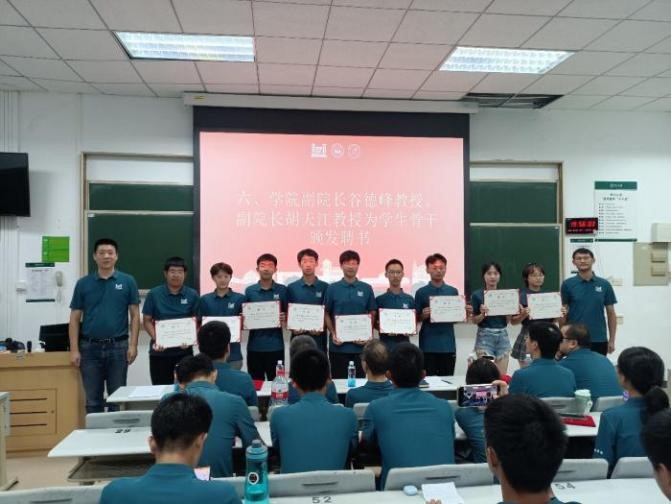 副院长谷德峰教授、胡天江教授为学生骨干颁发聘书,鼓励他们肩负职责,做好模范,在自己的职位上认真做事,发挥桥梁纽带作用,展现青年学子的应有担当。