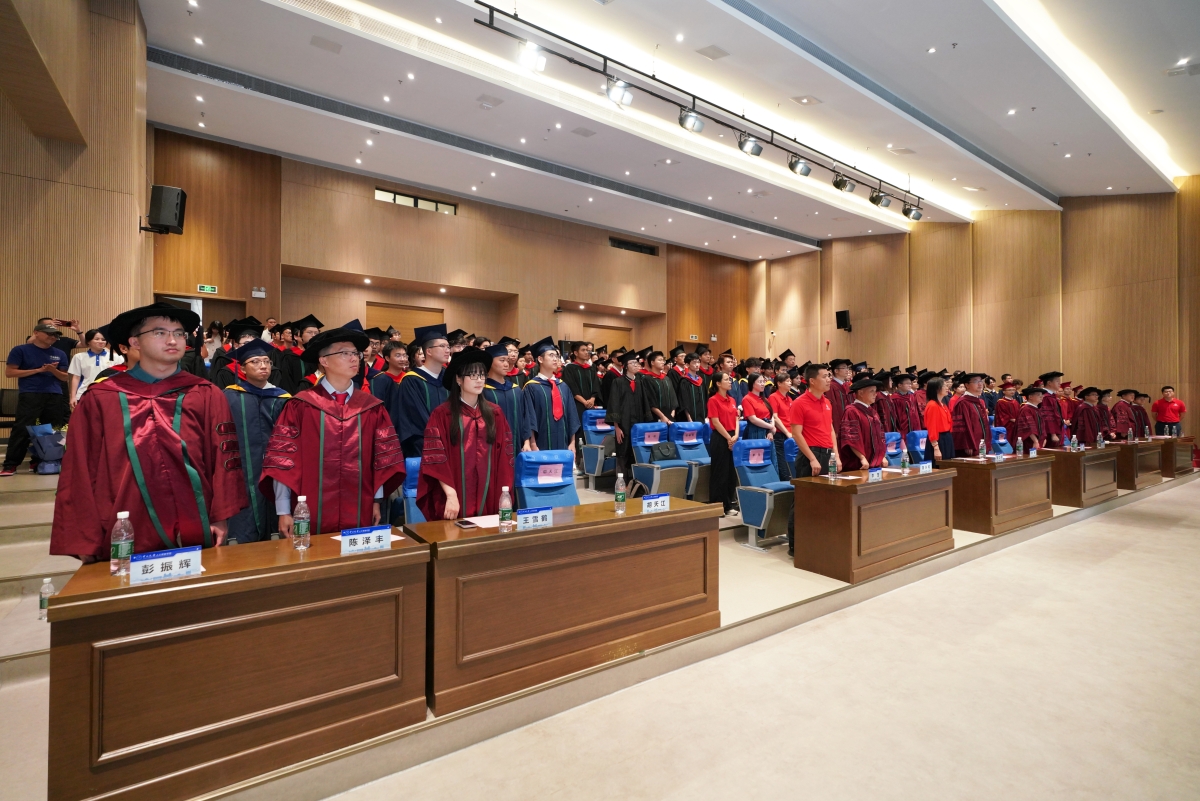 仪式步入尾声,全场人员缓缓起身,齐声唱响校歌。那悠扬的旋律仿佛化作无形的纽带,将大家对往昔岁月的留恋与对明日征程的憧憬紧紧交织在一起。在这一片庄重而充满希望的氛围中,中山大学人工智能学院2025届毕业大会画上了完满的句号。
